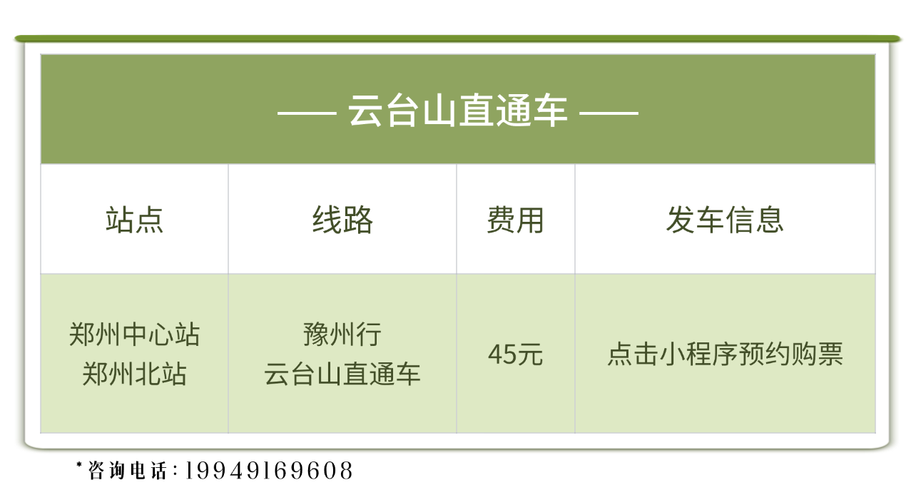 ·郑州中心站、郑州北站下车,点击预约直通车直达云台山。