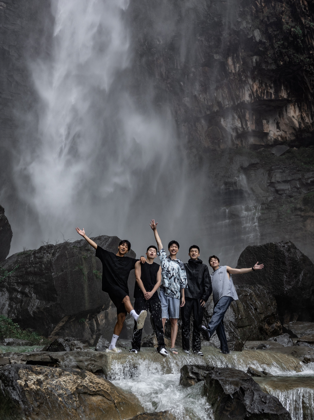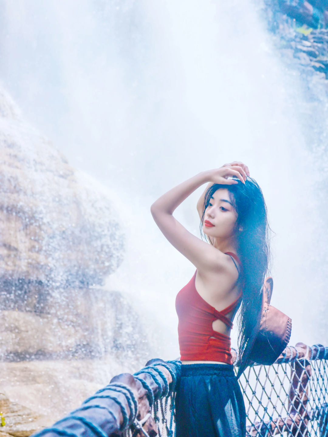 水雾沁凉扑面水声轰鸣里