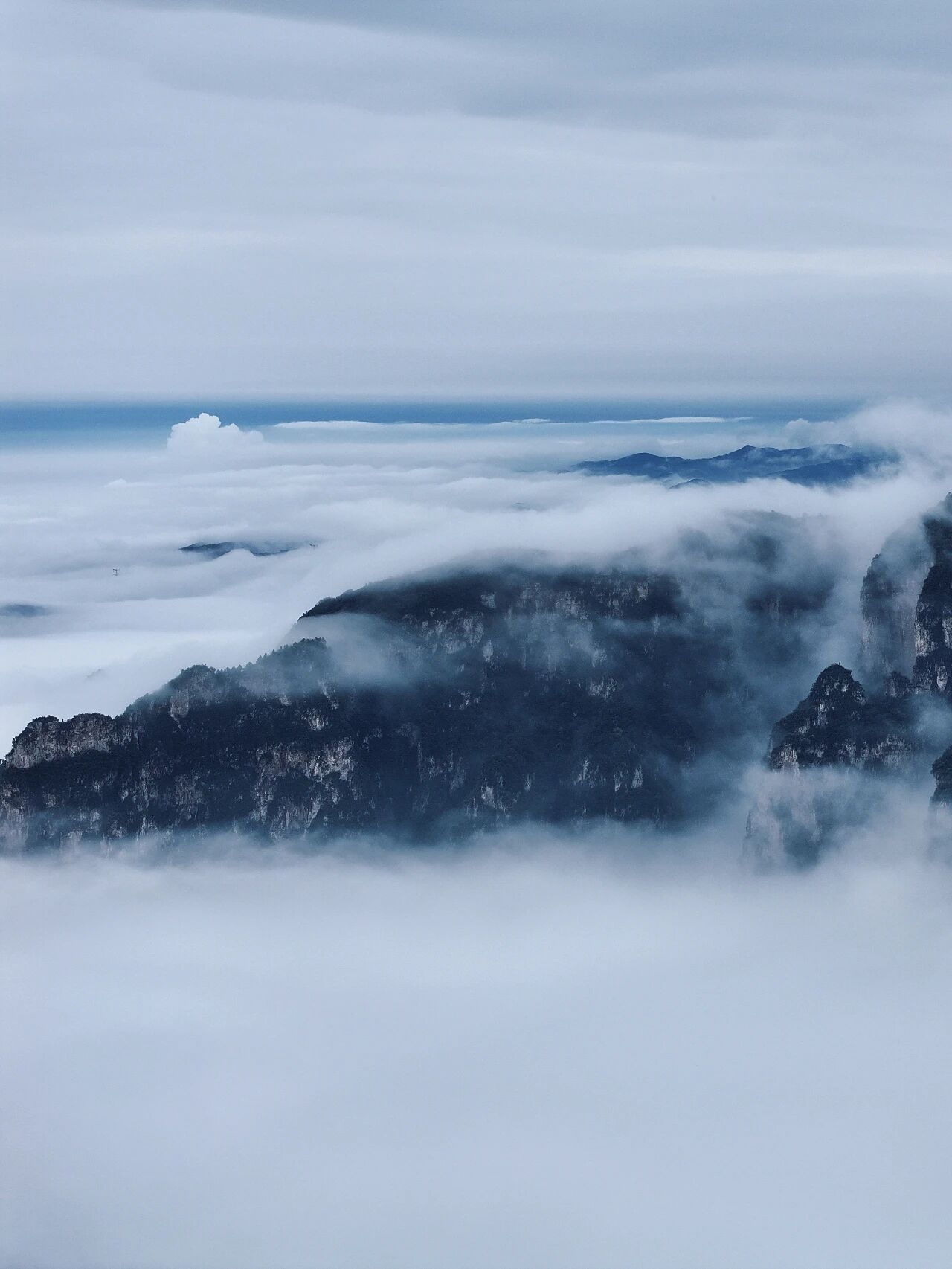 连绵起伏的山峦在云层中若隐若现