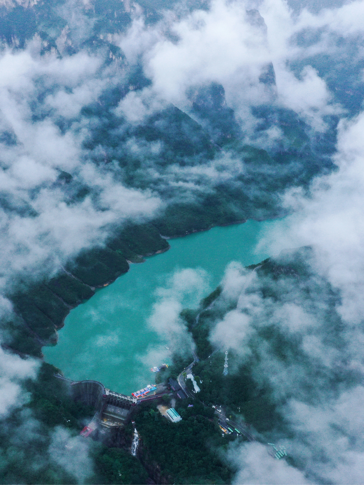 青绿山脉在云海中若隐若现