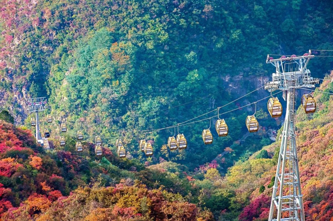 乘坐凌空索道纵览满山红妆