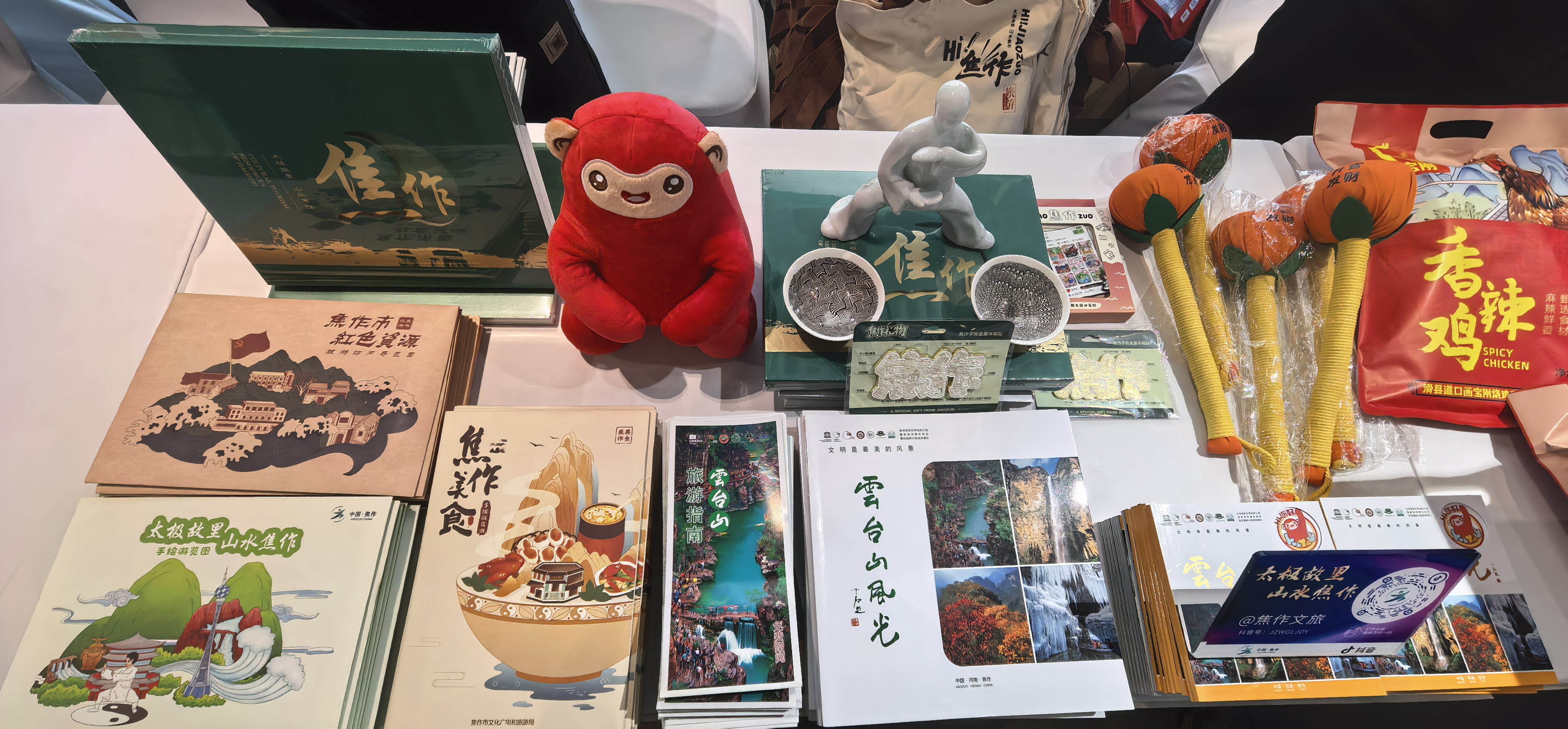 我市文旅工作人员积极向参加活动的旅行商代表和民众展示焦作特色文旅资源,包括绞胎瓷、太极文创、云台山文创、焦作礼物等文旅文创产品。这些产品不仅体现了焦作深厚的文化底蕴,更展现了现代创意与传统工艺的完美结合。现场发放的焦作文旅资源画册、手绘地图、黄河手册、云台山图册及旅游指南、文创手提袋等宣传资料达1000份,有效扩大了焦作在川渝地区的影响力。
