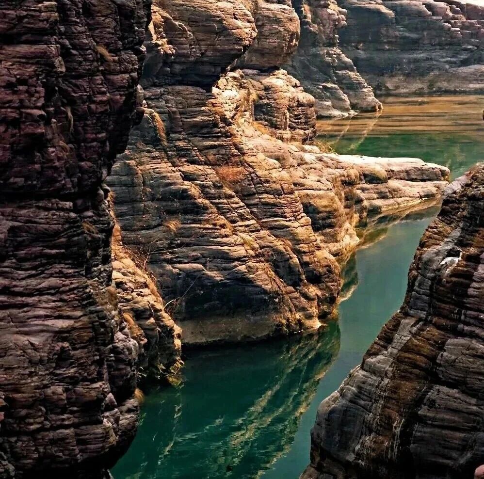 金黄的光、艳红的崖……