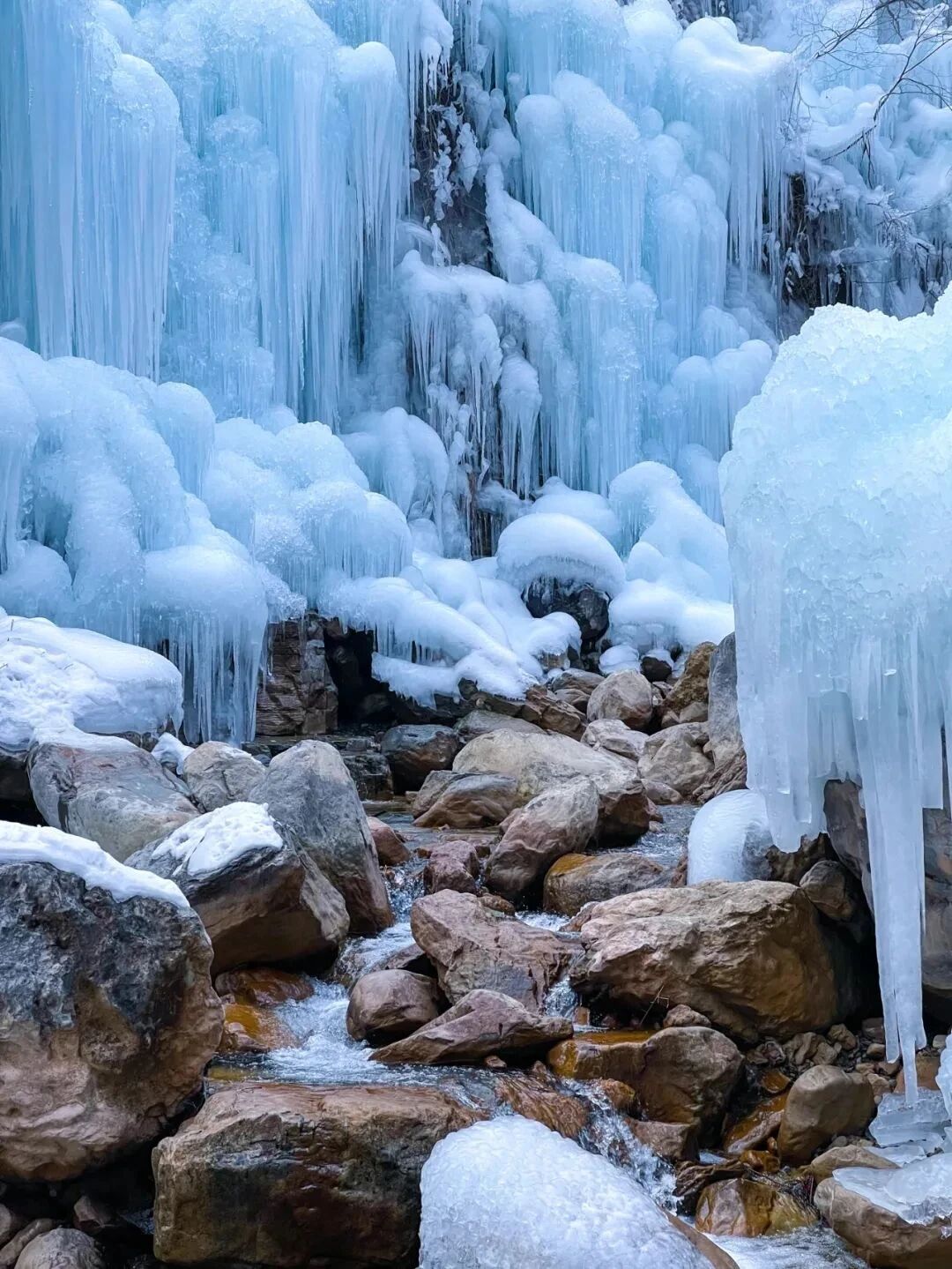 山间的流水凝结成晶莹的冰挂