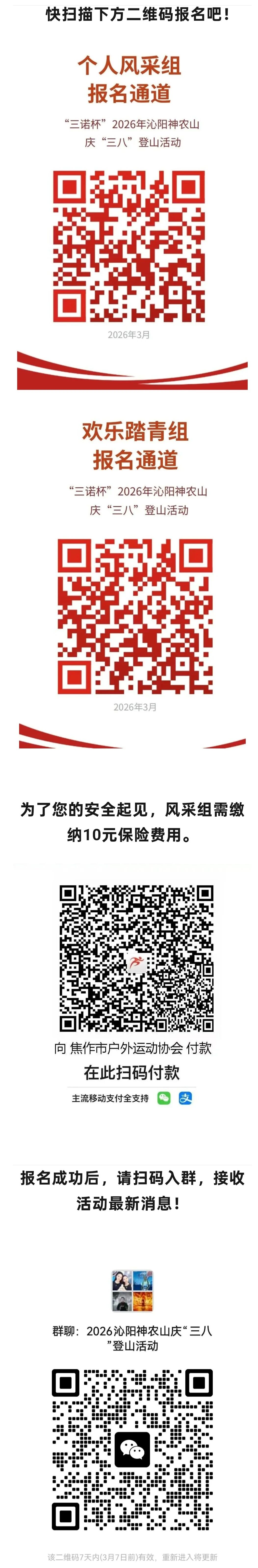 2. 欢乐踏青组:男女均可报名,不录取名次,活动当天可免费游览神农山景区(免首道门票),主打一个休闲赏景、放松身心。