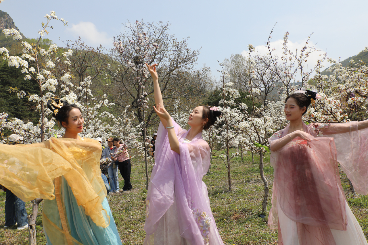 正值春日,修武县西村乡陪嫁妆村周边万株梨花盛开,如云似雪,构成了一幅天然的太行春景图。4月15日上午,陪嫁妆村热闹非凡,一场以“情定梨云·相约中国爱情第一村”为主题的高山梨花会活动在这里举行。本次活动将赏花游园、文化体验、梨树认养融为一体,开启了一场沉浸式春日盛宴,激活乡村“赏花经济”,走出一条农旅深度融合的乡村振兴新路径。