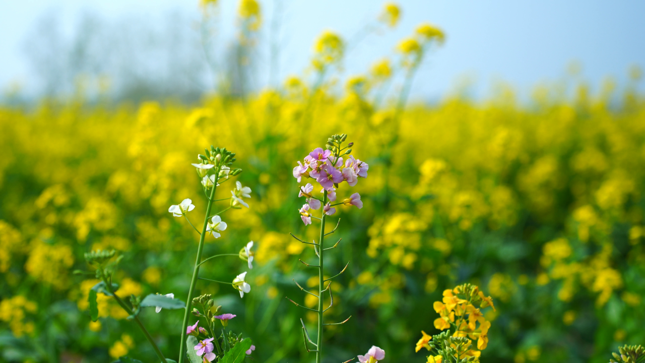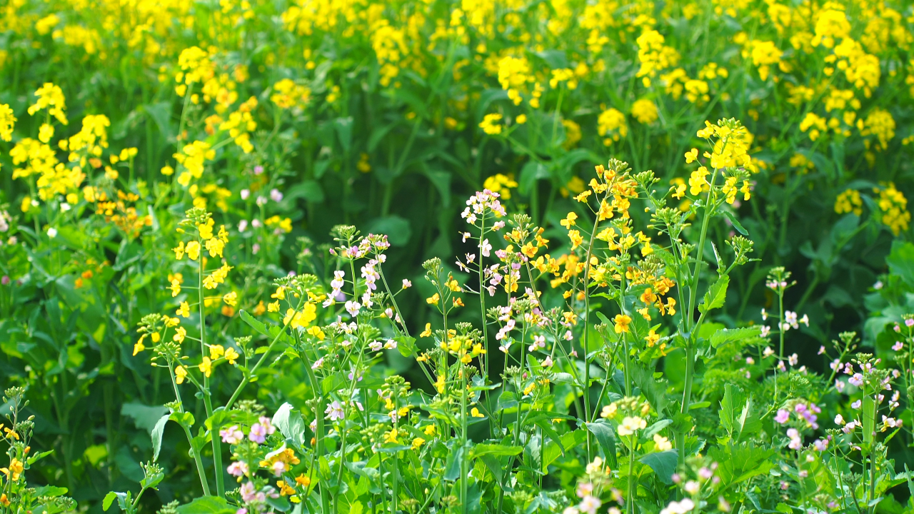都市・麦田里五彩油菜花绚烂绽放