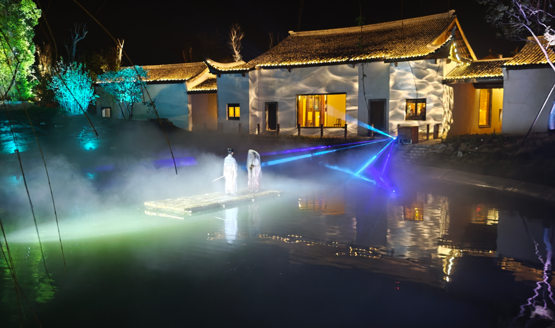 《今夜·东沟》实景演艺以山为幕、以光为笔,融合全息投影、激光矩阵、AR技术,再现陈王廷创拳、悟道、传艺的传奇历程。在这里,你可以沉浸式穿越百年,与宗师“隔空对话”。
